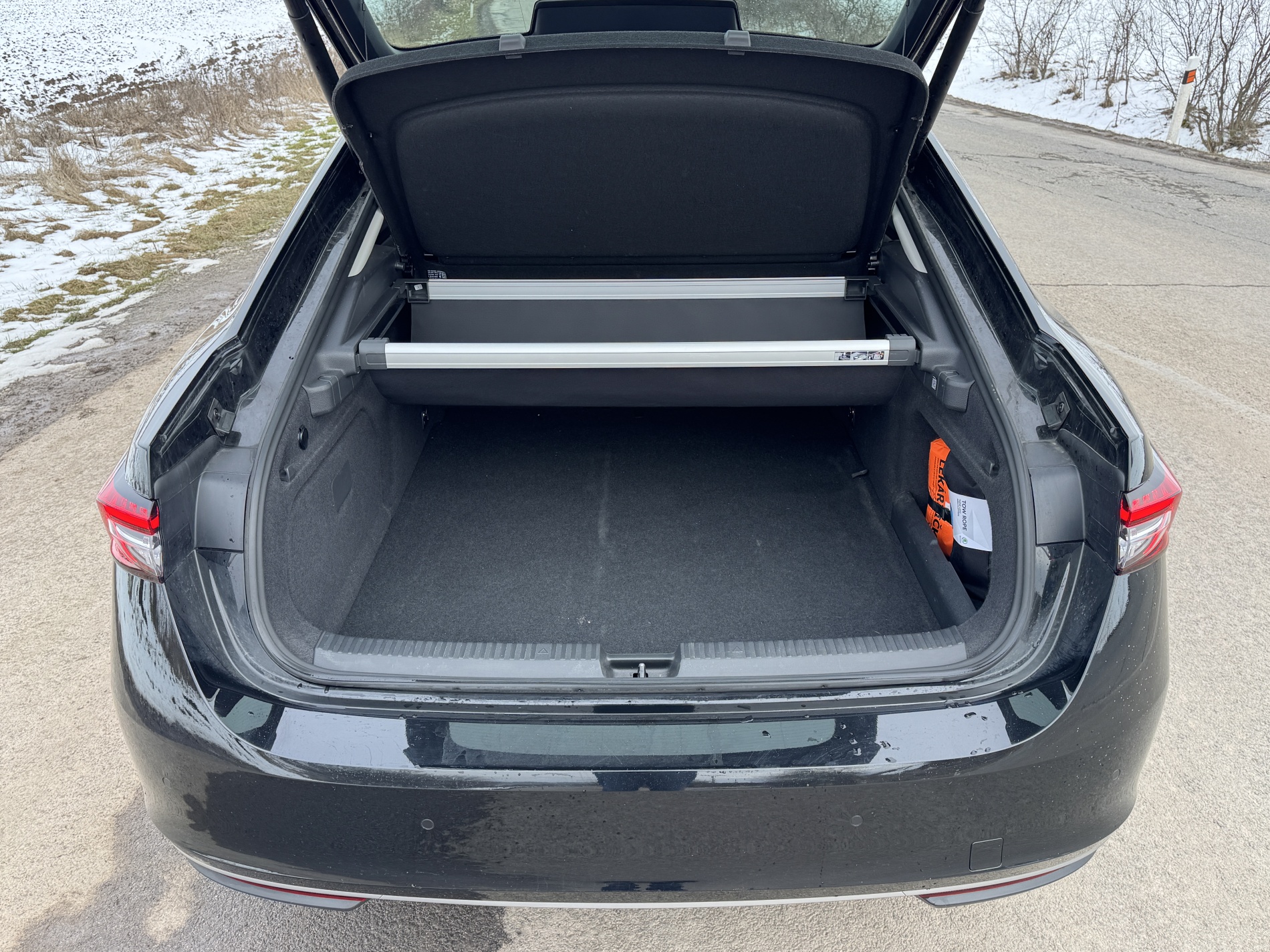 Plug-in hybrid si však niečo zobral späť. Kufor má 486 litrov a po sklopení zadných sedadiel 1 635 litrov. Oproti nehybridným verziám je to menej približne o 160 litrov. Samotné číslo ale nevypovedá všetko. Batožinový priestor zostáva stále veľký, dobre prístupný a vďaka karosérii liftback aj veľmi praktický. Veľkosť kufra síce utrpela, ale nie tak, aby sa zo Superbu stal kompromis na víkendové kufre a dve tašky. Elektricky ovládané piate dvere s virtuálnym pedálom tú praktickosť ešte zvyšujú.