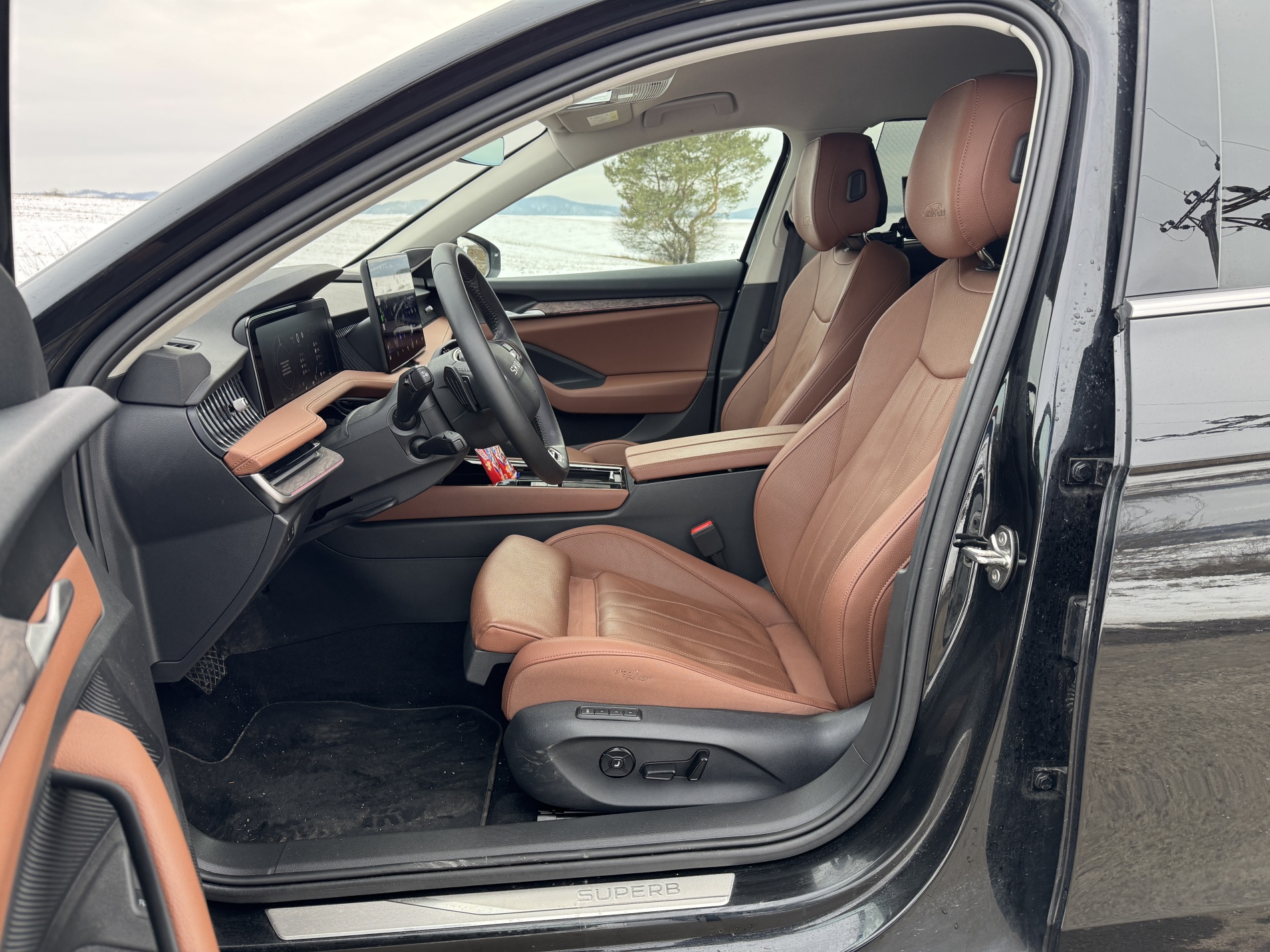 Vo vnútri je to cítiť okamžite. Najmä vzadu je miesta na nohy toľko, že Superb už tradične pokukuje aj po triede vyššie. Kabína pôsobí vzdušne a uvoľnene, nie stiesnene ani pri plne obsadenom aute.