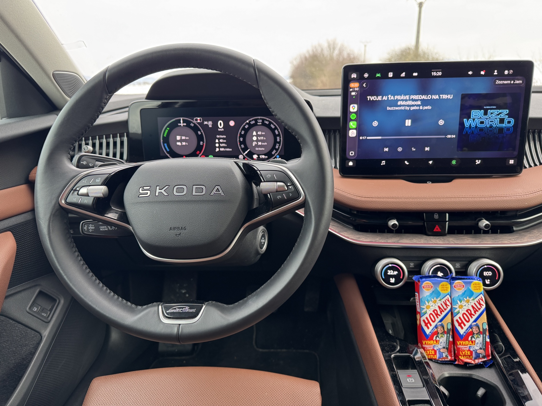 Práve tu sa láme logika celého auta. Batéria má brutto kapacitu 25,7 kWh, využiteľných je 19,7 kWh. Udávaný elektrický dojazd sa pohybuje takmer na úrovni 120 km podľa WLTP. Dôležitejšie však je, čo ukázala realita. Aj v chladnom počasí vedel Superb iV prejsť reálne cez 80 km čisto na elektrinu. To znamená, že v meste a na okreskách vie pri nabitej batérii jazdiť prakticky za 0 l/100 km.